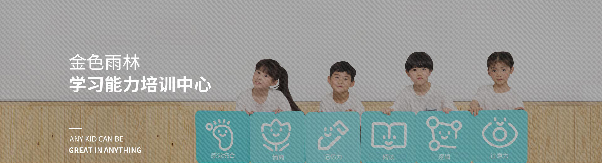 金色雨林提升学习力的解决方案,是通过孩子的学习步骤和心理发育过程,逐渐的导入到学习和生活,与学业挂钩,教会孩子更有效的学习相应科目的方法,是全面提升学习力的个性化解决方案。课程板块涵盖:感觉运动统合课程、体能课程、 包括“注意力”“记忆力”“视动统合能力”“理解阅读能力”“数学思维能力”、情商课等。